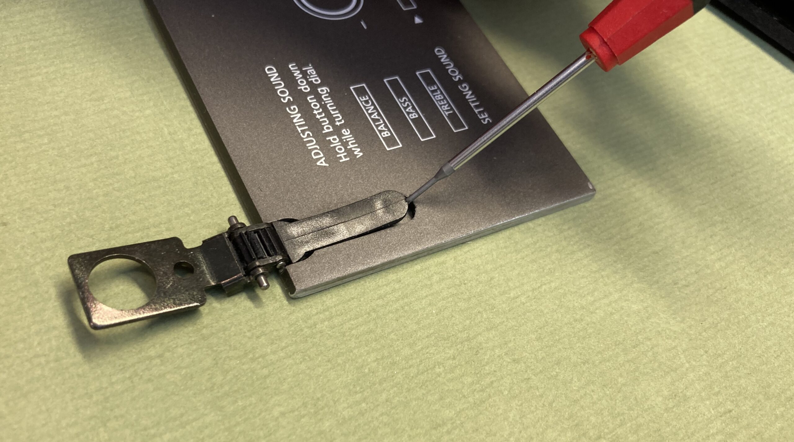 Pair of new hinges for the flip-down metal cover for the following Bang & Olufsen remote controls: